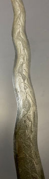 A very good keris from Celebes with large Jawa Deman hilt and rare kris with a twist in the blade. Original scabbard with ivory buntut.