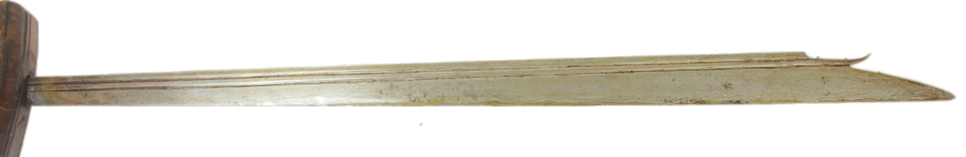 The crossguard is very thick and different from the usual Philippine type. The blade with double fullers ,with a band of pamor and a quite long slope. The origin of this non-muslim kampilan could be the Celebes sea ( North Borneo-North Celebes-Talaud Islands)