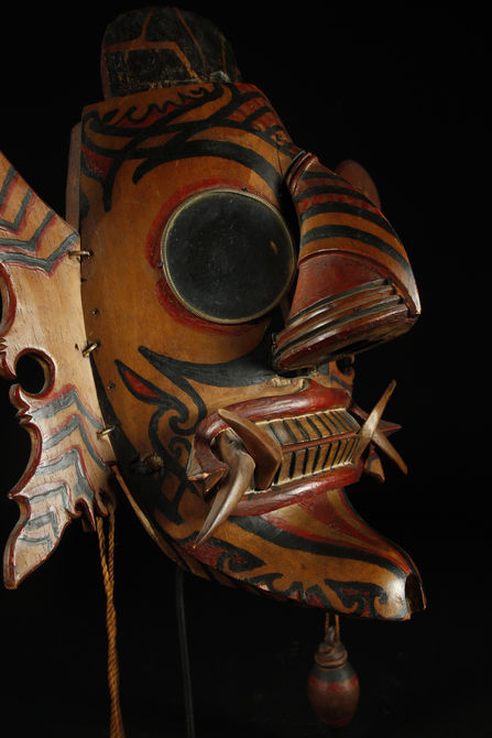 This mask was most likely purchased from that art exhibition or used by of one of the mentioned Dayak dancers.