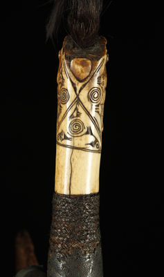 Both sides of the antler hilt are carved in different design what is quite rare.