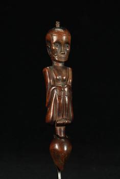 A superb carved Karo or Toba Batak lime squeezer with very fine carved details. The face with mysterious expression . Very nice patina.