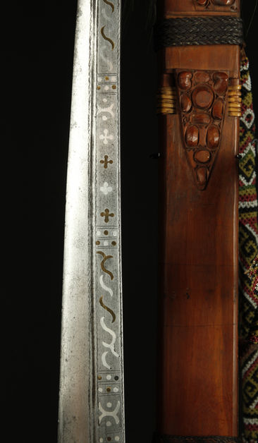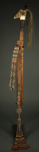 Wooden scabbard with nice carved details and very good beadwork.